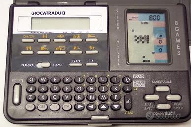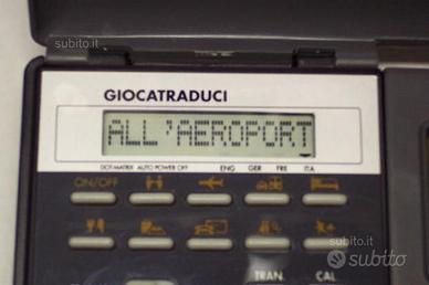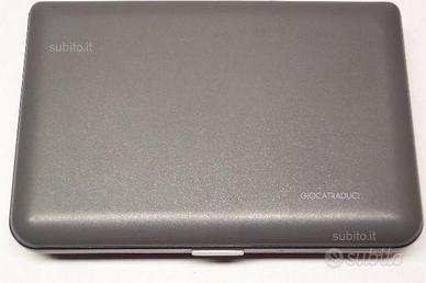 Giocatraduci Mulino Bianco perfettamente funzionante, traduce singole parole tra le lingue Italiano, Inglese, Francese e Tedesco. Inoltre dispone di frasi pronte es. per aereo o ristorante. Dispone del gioco PAC-LAND e di ulteriore cassetta intercambiabile con 8 giochi su 9 livelli. Funziona con 3 pile AAA (comprese).