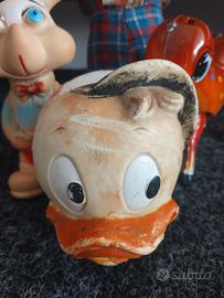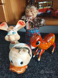 Giocattoli in gomma, latta e stoffa