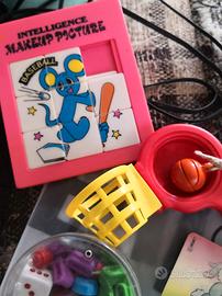 Gruppo giocattoli anni 80,dama,puzzle,yio yio, trottolina, cartolina formaggino mio, battaglia navale, tutto in ottime condizioni come da foto