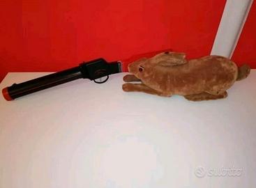 Gioco vintage anni 70 della Cosmec. Il gioco comprende un coniglio e un fucile a batterie. Quando il coniglio si muove lo scopo è di sparargli così che l'animale possa emettere un suono e tentare la fuga. Oggetto inutilizzato da parecchio tempo, ha sempre funzionato ma non essendo stato acceso da anni non ne garantisco la funzionalità. Euro 20.