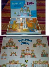 Gioco in scatola da collezione ''BUILDING BRIKS'', anno 1979. Possibilità di comporre più figure con un set di quasi 50 pezzi, è privo di un solo pezzo di legno (la mezzaluna). Euro 10 (B9).