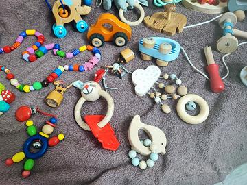 meglio diversi giocattoli prima infanzia in legno tutti in ottimo stato tranne qualcuno con evidenti segni come visibile in foto ma trascurabile calcolando che si tratta di oggettini in legno tutti bellissimi molti animaletti con ruote e corda per divertirsi a farli muovere tutti i giochi istruttivi educativi come quelli di una volta in legno consistente tre euro al pezzo e qualcuno a 5 insieme 50 euro ottima affare
