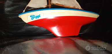 Barca giocattolo in legno anni 60 in ottime condizioni di conservazione. Prodotto dalla Seifert – Boot made in Germany. Le misure massime sono: lunghezza max dello scafo 24 cm larghezza 9 cm altezza ingombro massimo 32 cm. Pezzo da collezione.