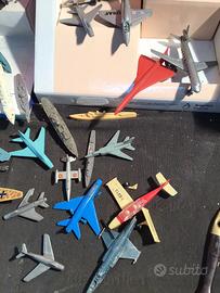 Lotto di piccoli aerei in plastica o in ferro e gruppo di navi varie scale e marche un po rovinate ma ugualmente interessanti per chi colleziona. Non si accettano resi, le foto fanno parte della descrizione
