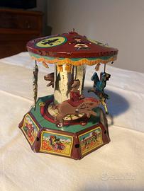 Si tratta di un carosello giocattolo in latta d'epoca.