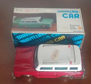 Auto giocattolo in latta Travelling Car con sirena. Un pezzo da collezione in perfette condizioni degli anni '70.