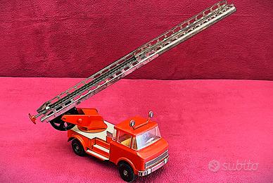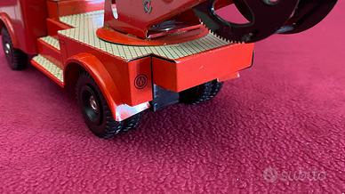 Giocattolo di latta perfettamente funzionante conservato e funzionante. Latta litografata anche intero e cruscotto. Pneumatici in gomma iontegri e veritieri. La scala di aziona con la manovella in foto ed è telescopica cm 48 max