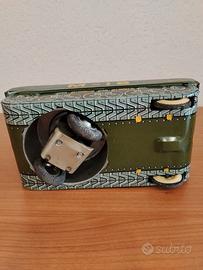 Carro armato in "latta" anni 50, primi giocattoli funzionanti a batteria. Questo in automatico quando trova un ostacolo indietreggia e prosegue. Vecchi ricordi d'infanzia, davvero molto carino.