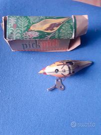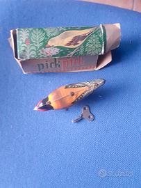 giocattolo vintage uccellino in metallo con carica manuale anni '70 funzionante e in confezione originale