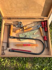 Giocattolo d'epoca in legno con attrezzi del piccolo falegname realmente funzionanti