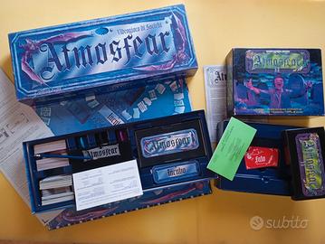 Atmosfear e' un gioco da tavolo dove ciascun giocatore interpreta uno tra 6 personaggi horror (zombie, mummia, vampira, strega, lupo mannaro, fantasma), a cui è abbinato un segnalino-tomba, un colore, 6 chiavi dello stesso colore ed un numero estratto a sorte, che lo identificano nel corso del gioco. Prima dell’inizio ognuno scrive sul dorso di una carta Incubo la suapiù grande paura... in più c'è la scatola dell'espansione del gioco una rarità