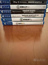 Vendo 6 giochi originali per PS4 utilizzati pochissimo: •Fifa 18 •Fifa 19 •Fifa 21 •Kingdom Hearts 1.5+2.5 •Kingdom Hearts 2.8 •Kingdom Hearts 3