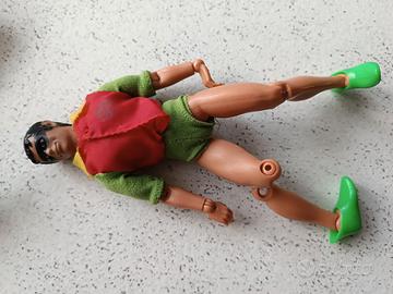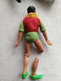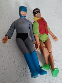 Giocattoli vintage in buono stato, usati con difetti: Batman, manca logo e mantello; Robin mancano logo, cintura e mantello e gamba presente ma staccata.
