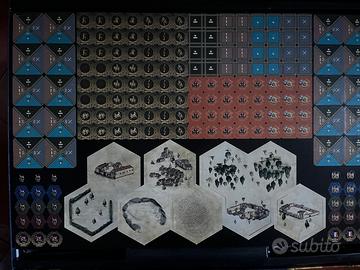 NON sigillato, ma MAI utilizzato, pedine ancora imbustate. Tolto il cellofan, mai aperto, tranne per le foto allegate. Lievi segni sugli angoli del cartone.