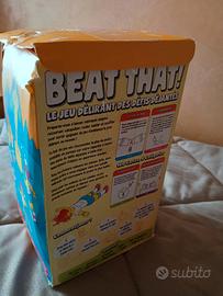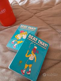 gioco da tavolo Beat that la scatola è un po' rovinata ma il contenuto è come nuovo comprende 10 bicchieri di carta 2 bacchette 2 mazzi di carte sigillate 1 metro mai aperto 1 sacchetto di gettoni mai aperto 1 clessidra 1 blocchetto notes sigillato 4 palline ne manca una erano 5 4 dadi mai aperti