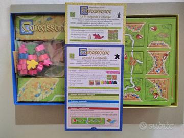 Vendo, in blocco, gioco da tavolo CARCASSONNE, II Edizione (in produzione dal 2014 al 2021), con le espansioni LOCANDE E CATTEDRALI e LA PRINCIPESSA E IL DRAGO (anch'esse della II edizione), al prezzo complessivo di Euro 48.
