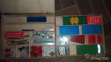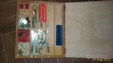 La scatola in legno a due ripiani non è originale ma di qualità superiore a quelle della Condor. I pezzi presenti sono nuovi mai usati e provengono da 3 diverse confezioni (non complete)