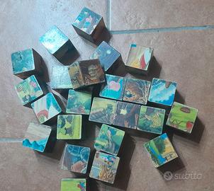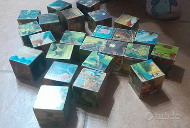Gioco di puzzle di cubi composto da 24 cubi che a seconda della facciata compne delle immagini di Gummi's Bears, serie della Walt Disney company del 1986. Pezzo vintage con vari difetti (vedete in foto), quindi lo vendo come danneggiato.