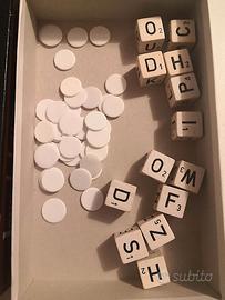Gioco da tavola dadi con lettere. La scatola contiene: 13 dadi con lettere; 1 contenitore Gettoni bianchi vari.