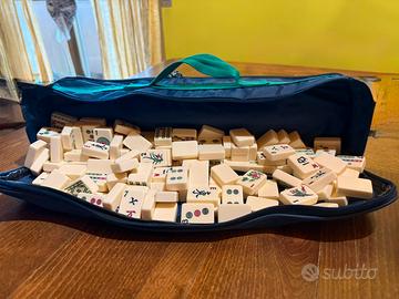Custodia blu per il gioco del Mah Jong. La custodia presenta una tracolla verde per un facile trasporto.