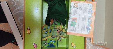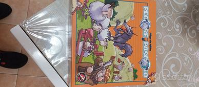 Gioco divertente di piazzamento tessere con pecore lupi e cacciatori
