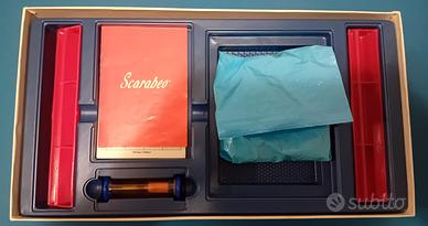 vendo gioco da tavolo scarabeo anno 1985 vintage della editrice giochi. pezzi tutti originali e presenti: tabellone gioco in condizioni ottime, libretto istruzioni in condizioni ottime, numero 4 porta tessere per giocatori in condizioni ottime, clessidra intatta e in condizioni ottime, busta porta tessere con la scritta scarabeo in condizioni ottime, tessere tutte presenti comprese le 2 tessere neutro e le 2 tessere scarabeo in condizioni ottime e non scolorite, blocco segnapunti giocatori in condizioni ottime e con molti fogli presenti da poter utilizzare. scatola con un angolo danneggiato (come si vede dalla foto) ma nel complesso in buone condizioni, parte posteriore della scatola con segni del tempo (come si vede dalle foto).