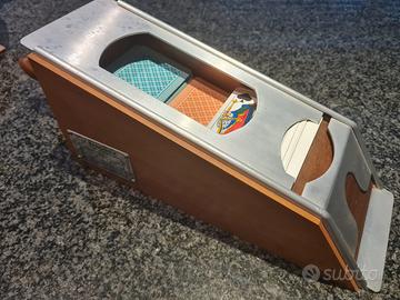 cassetta in radica/noce anni 70/80 (44x32) come da foto, roulette bakelite Dal Negro con due palline bianche, dadi e cate da poker , schacchi, dama gettoni in acetato (tanti e neutri) tappeto da gioco, scacchiera legno estraibile. distributore di carte da gioco da tavolo vintage in legno Le Banquier . La cassetta in radica riporta undifetto nel legno cm. 1,5 per 2. Il tutto originale Dal Negro.