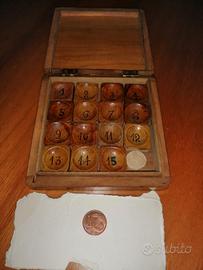 VINTAGE giochi in scatole di legno separate una di SCACCHI e l'altra gioco del 15 la chiusura della scatola di questo gioco è un po' incurvata il costo è di 90 euro compreso spedizione