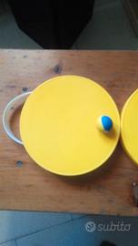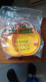 gioco del tamburello vintage in plastica dura con pallina magica nel suo sacchetto originale d'epoca nuovo mai usato