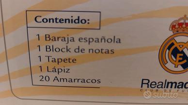 Vendo gioco da tavolo di carte in spagnolo. Prodotto ufficiale del Real Madrid realizzato in occasione del centenario del club. Mai usato, contenuto ancora imbustato. Comprende tappetino, carte, monete, manuale...
