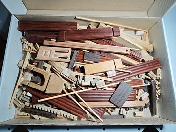 Raro Gioco di Costruzioni Vintage per adulti in legni pregiati e naturali. Nuovo mai usato kit da 482pezzi Valleyflower art.1011 Piccolo Chalet Svizzero. Dimensioni Scatola 50x31x9cm. La Ligne1992 è una collezione prestigiosa di giochi di costruzione realizzati esclusivamente in legni masselli selezionati come: palissandro, rovere, tiglio, ciliegio, noce, pino, padouk, faggio trattati senza tinta né vernice. La colorazione del prodotto è quindi data dalle diverse tinte naturali dei legni. Il montaggio avviene esclusivamente ad incastro, senza l'uso di colla ed è facilitato dagli schemi inclusi nelle confezioni. I modeli sono facilmente smontabili senza danno per i pezzi. La Ligne1992 è garantita 100% ecologica. Made in Italy. Non adatto a bambini di età inferiore a 36mesi a causa della presenza di pezzi piccoli. Marcatura CE. Rimanenza di magazzino proveniente dalla chiusura di un negozio di giocattoli in legno, scatola con qualche lieve segno del tempo, contenuto interno perfetto pulito e nuovo.