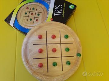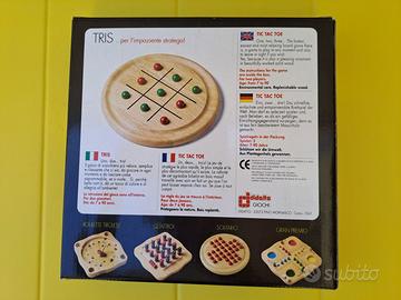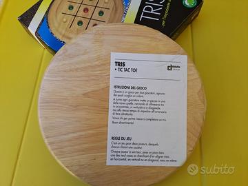 Tris, gioco in legno Didatto. Tutto in legno come una volta… Il gioco è per due giocatori. Le istruzioni sono all’interno della scatola, ancora sigillata con la sua plastica originale come da foto. La tavola di gioco è tonda ed ha un diametro di 22 cm mentre la profondità è 2,8 cm. Adatta anche ai bambini dai 7 anni in su, persone adulte o anche come oggetto da collezione o esposizione.