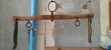 Vendesi antico giogo per traino animale fine ''800 interamente realizzato a mano e restaurato,con particolari intagliature e pitture fatte all'epoca a mano.