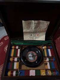 Gioco roulette con coperchio a tema storico vintage e completo di fiches, tappetino ed istruzioni. Made in Italy.