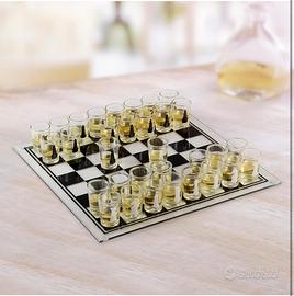 Gioco degli scacchi con bicchierini da liquore al posto delle pedine