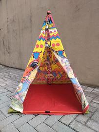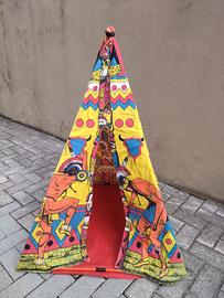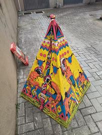 Vendo gioco vintage LA TENDA DEI SIOIUX anno 1983. Lo stato di conservazione generale è buono. Sono presenti normali segni del suo trascorso. La tenda ha la base in pvc,mentre i laterali sono in tessuto decorato magistralmente.Misure: base 1,20 x 1,20mt. H 1,50mt. Si effettuano spedizioni a carico del destinatario. Prezzo: 80€