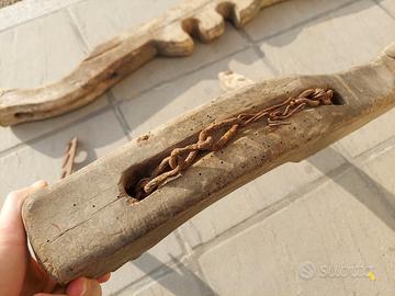 Vendo 2 gioghi antichi, presentano vecchi fori di tarlo ma é già stato effettuato il trattamento anti tarlo, lunghezza di entrambi 118cm. Condizioni come da foto, non perfetti ma nrmmeno marci, ancora solidi, tranne i 2 pezzi piccoli che hanno subito una rottura (vedi foto). Vendo insieme a 20€ ritiro a Gruaro o il 17 e 18 Novembre a Pordenone/Aviano
