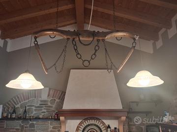 giogo antico originale risalente fine '800 inizio '900 munito di catene originarie. Utilizzato attualmente come lampadario. vendo per modernizzazione arredamento. Adatto per collezionisti e amanti del genere.