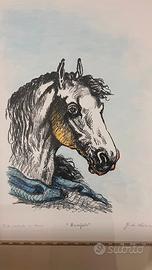 Propongo una rara litografia originale di Giorgio de Chirico, raffigurante il celebre cavallo Bucefalo, soggetto iconico della produzione tardo-metafisica dell’artista.