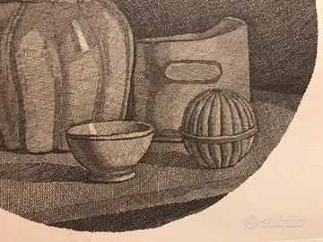 Acquaforte di Giorgio Morandi del 1946, pubblicata e incorniciata. Firmata nella lastra, come da foto, nessuna tiratura riportata. Misura dell’ Opera senza cornice 32,5 per 25,8 cm. Non Autenticata, non archiviata, venduta con la formula visto e piaciuto. In omaggio Catalogo della Pubblicazione come in foto.