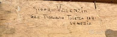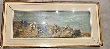 Olio su tavola Giorgio Valenzin anni 30 con cornice originale. Primule colorate Misure 63x30cm, solo tavola 50x18cm