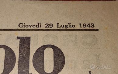 Giornale d’epoca ORIGINALE. Notizia riportata: Scioglimento del Partito Fascista dopo il 25 Luglio 1943 e arresto Mussolini. Data pubblicazione: 29 Luglio 1943. Perfettamente conservato in involucro plastificato, lievi segni di usura dovuti al tempo. Per collezionisti o appassionati del genere (antichità, antiquariato, rarità, vintage, collezione, mercatino, militaria, libri, epoca, editoria, arredo, modellismo, modernariato, antico, storico, vecchio, reperti militari, cimeli prima e seconda guerra mondiale, articoli religiosi, chiesa, arredo sacro, ecc…). Consegna a mano da preferirsi, con pagamento in contanti. Possibilità di spedizione in tutta Italia con Corriere Espresso. PS: Se ti interessano altri articoli simili a questo, dai un’occhiata agli altri miei annunci: vai sul mio “profilo inserzionista” cliccando sul mio nome in basso su questa pagina, e ti compariranno tutti i miei ANNUNCI ONLINE ancora disponibili. Tutti gli articoli sono di provenienza legale. Avviso ai potenziali TRUFFATORI: La fase di confezionamento, imballaggio, chiusura e pesatura di ogni pacco viene SEMPRE registrata, e le immagini vengono conservate fino alla conferma del buon esito della ricezione. In caso di contestazioni, le immagini verranno fornite alle autorità competenti, insieme a tutta la documentazione della spedizione, per accertare eventuali tentativi di truffa come la dichiarazione del “pacco arrivato vuoto” o similari. Lo stesso vale anche nel caso in cui l’oggetto venga restituito danneggiato, rotto, o in condizioni diverse da come è stato spedito.