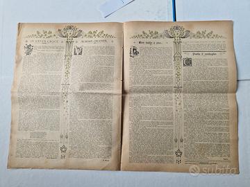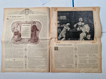 Numero originale del giornale Scena Illustrata, in lingua italiana, completo di copertina e pagine interne illustrate, con articoli, incisioni e pubblicità dell’epoca, presente grande tavola centrale illustrata. Periodo primi anni del Novecento, come da data visibile nelle pagine interne. Condizioni buone considerando l’età, carta ingiallita, pieghe centrali e segni del tempo, piccoli strappi o usure ai bordi come da foto, nessun restauro. Ideale per collezionisti, arredamento vintage o studio grafico e storico. Dimensioni ampie, formato originale non rifilato, conservato sciolto