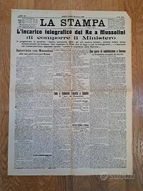 In omaggio 2 riproduzioni del 1972 delle prime pagine del Corriere della Sera e della Stampa del 30 ottobre 1922 che annunciano l’incarico a Mussolini per la formazione del governo.