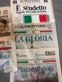 Giornali conservati benissimo scudetti del Napoli dí vari editoriali con maglietta e sciarpa Napoli
