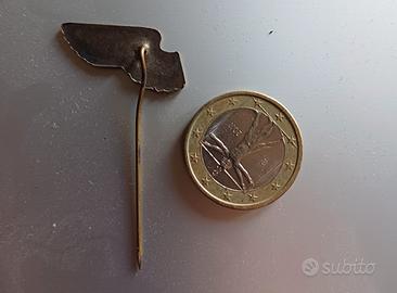 Raro distintivo da giacca della giornata delle due croci (campagna antitubercolare anno XVI EF - 1938) ) dedicato all'impresa della squadriglia della Regia Aeronautica soprannominata "sorci verdi. Dimensioni come da foto. Originale d'epoca garantito.