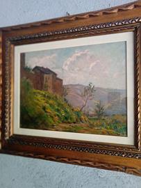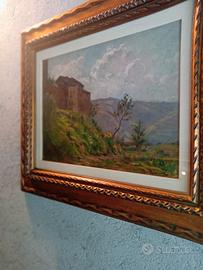 Perfetto dipinto di GIOVANNI RAVA nato a ALBA nel 1874 e morì ad AGLIÈ CANAVESE nel 1944, soggetto la casa sul poggio un olio su cartone 40 x 30 più bellissima cornice con vetro, x qualsiasi informazione o foto sono a disposizione per spedizione spesa aggiuntiva !