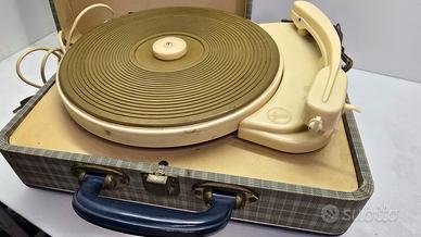Splendido giradischi portatile a valigetta (fonovaligia) originale degli anni '50/'60. Esterno in iconico tessuto a trama scozzese azzurra e interni color crema. Struttura solida con braccio e piatto originali, ideale per collezionisti. Pezzo d'arredo vintage perfetto per amatori o restauro conservativo. Disponibile per ritiro a mano o spedizione tramite TuttoSubito. Il motore gira ma il piatto non si muove. Vendo come NON FUNZIONANTE. Disclaimer Vendita da privato con formula "visto e piaciuto". Trattandosi di oggetto vintage, viene venduto come pezzo da collezione o per restauro, senza garanzia o restituzione. Hashtag #giradischi #vintage #modernariato #fonovaligia #anni60 #collezionismo