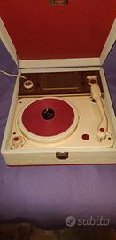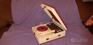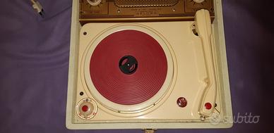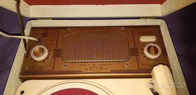 Giradischi prodotto dalla Geloso nel 1960. Bellissimo esemplare, dalle condizioni estetiche perfette. Ottima l'acustica; si avverte solo un ronzio di fondo quando non gira il disco (pare che sia un difetto di questo modello). Tra le tante fono valige è sicuramente uno dei pezzi meno diffusi e ricercato. Misure di ingombro massimo in cm. Sono 32 x 36 x 13