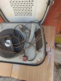 vengo giradischi vintage molto raro pochi pezzi ancora in circolazione per collezionisti soprammobile ho semplicemente per passione funzionante il coperchio è anche altoparlante